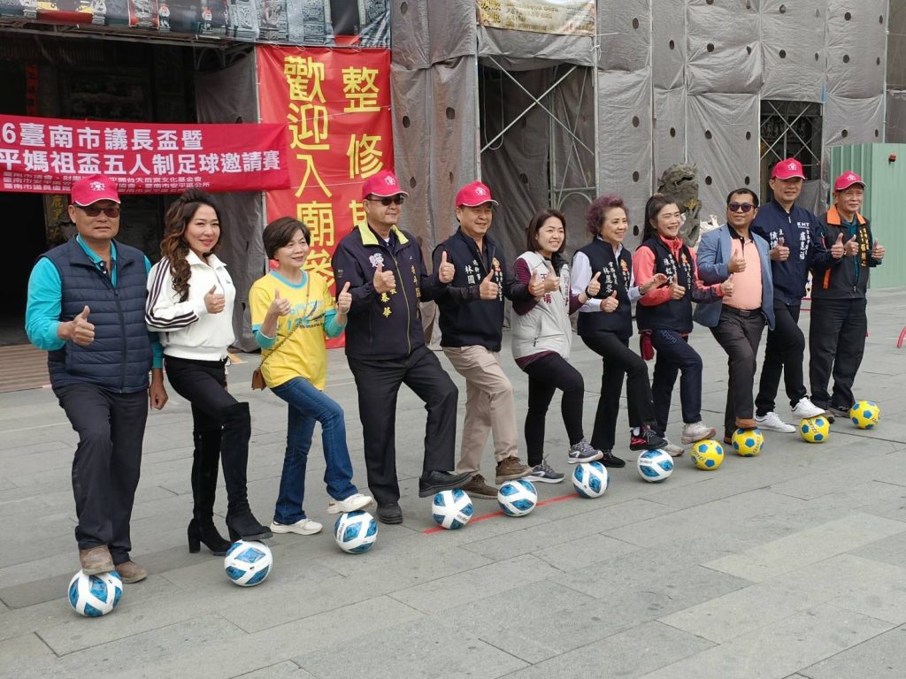 安平媽祖盃五人制足球賽於開台天后宮廟埕舉辦開球儀式,安平區長蕭泰華、市議員盧崑福、周麗津與市議員參選人李伯利、陳冠諭及安平區多位里長均到場見證。在開球儀式後,與會來賓也將球傳給參賽學校學生代表,由學子射門得分,也祝願世代傳承、球賽源源不斷。