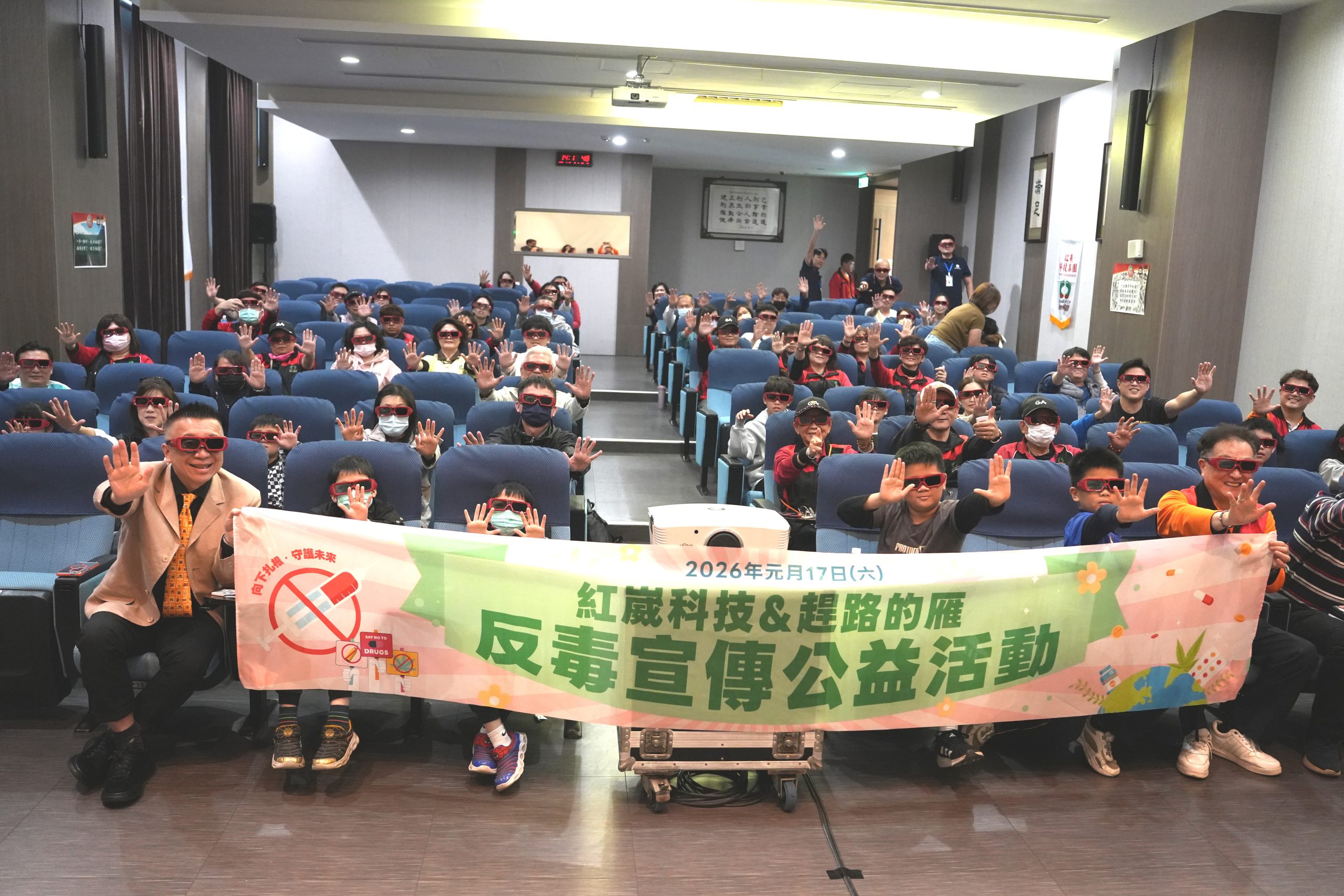 紅崴科技十七日特與社團法人中華趕路的雁全人關懷協會、中華民國多層次傳銷商業同業公會與台南市青年杏林醫學教育協會聯手推動反毒教育,在紅崴科技總部舉辦「反毒宣傳公益活動」,北中南的民眾共同參與這場盛會,透過觀賞以色列3D電影、真實事件改編的本土電影《宇裂芯沉》與識別仿真毒品、有獎徵答等活動、以提升社會大眾識毒、拒毒的意識。