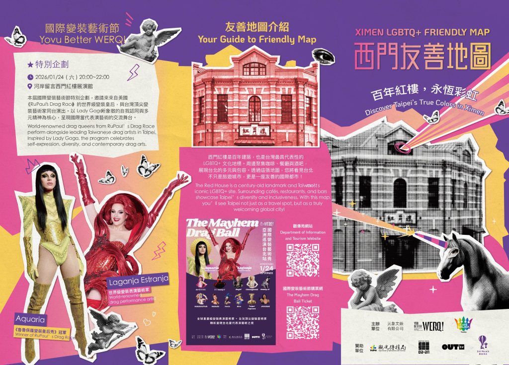 台北變裝藝術圈即將沸騰,「2026 You Better WERQ!」《致敬 Lady Gaga: The Mayhem Drag Ball》國際變裝藝術演出暨主題市集,將於1月24日晚間在台北西門河岸Live House盛大登場。這場活動推廣自我表達、多樣性及當代變裝藝術,靈感源自Lady Gaga克服霸凌的堅韌精神,用音樂與藝術療癒自己與粉絲,因而成為象徵全球LGBTQ+的過程。本次藝術節台北為亞洲巡演計畫第一站,隨後將在東京、曼谷、首爾、馬尼拉巡演。特色亮點包括RuPaul’s Drag Race(魯保羅變裝皇后秀節目)的國際皇后壓軸、限量的Meet & Greet合影互動,以及臺北市政府觀光傳播局贊助支持,特別製作的西門町LGBTQ友善地圖推薦,標註各種時尚酒吧、餐廳、IG打卡熱點等經典地標,幫助遊客輕鬆探索台北的多元文化面貌,感受真實彩虹活力。
