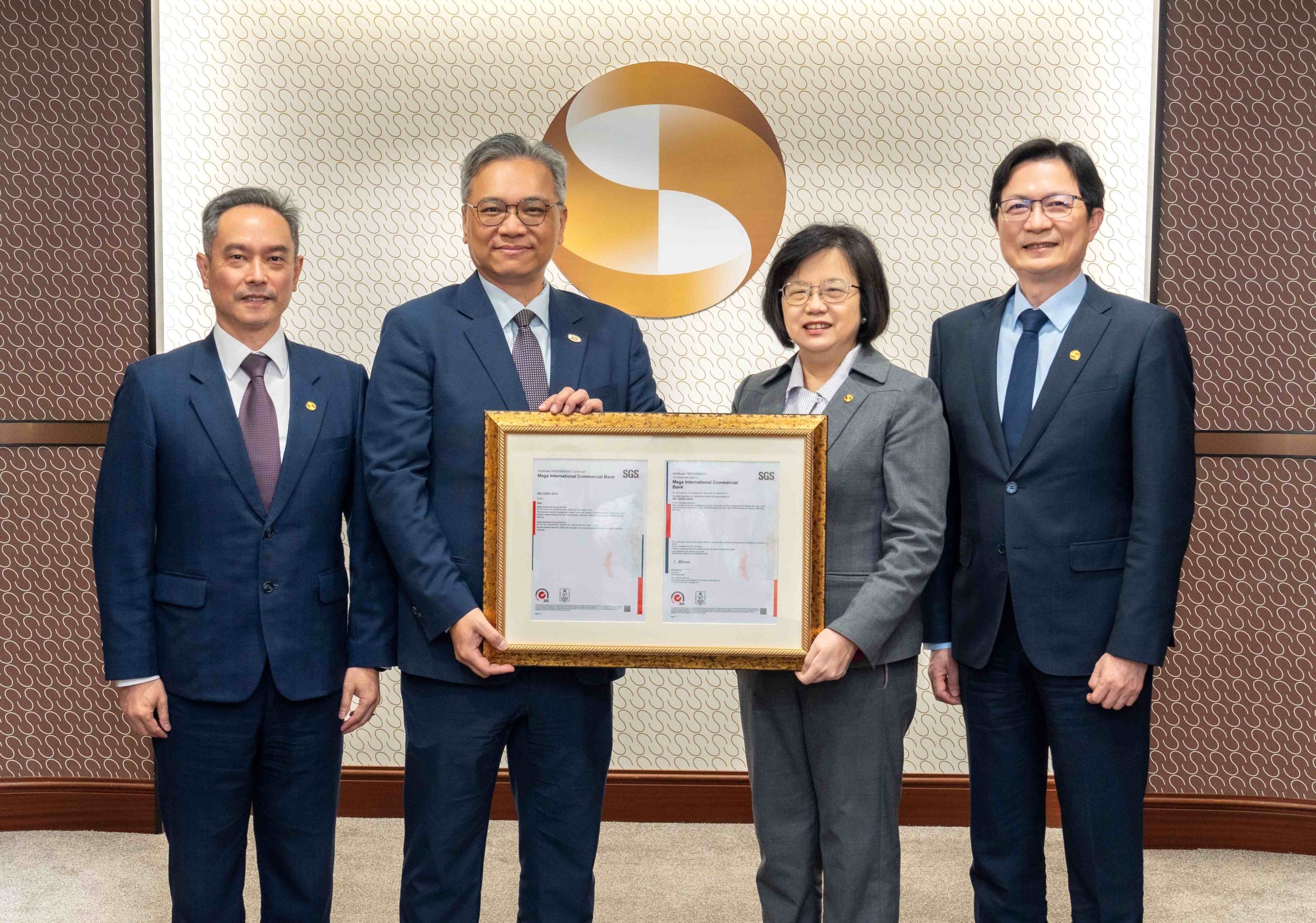 兆豐銀行近日再度通過台灣檢驗科技公司(SGS)驗證,取得「ISO 22301:2019營運持續管理系統國際標準」證書。由兆豐銀行總經理黃永貞代表受證,顯示兆豐銀行以制度化風險管理強化營運韌性,並持續和國際標準接軌的實力。
