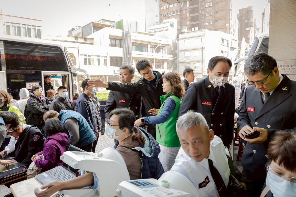 新竹市消防局每年均在一月十九日盛大舉辦捐血活動,現場擠滿捐血人潮,市長高虹安日特別到場向熱情參與捐血活動的警義消及熱心民眾表達感謝。(記者曾芳蘭攝)