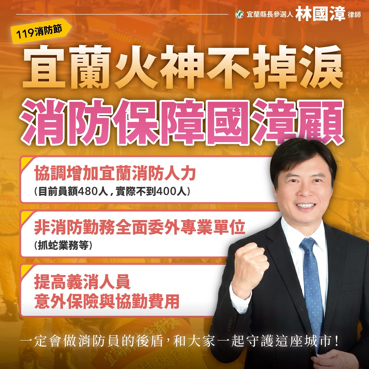 照顧消防人員,不能只停留在口頭感謝,更必須落實在人力、制度與生命安全的保障上。林國漳承諾,未來進入縣府,將全力推動三項具體作為,照顧消防相關人員: