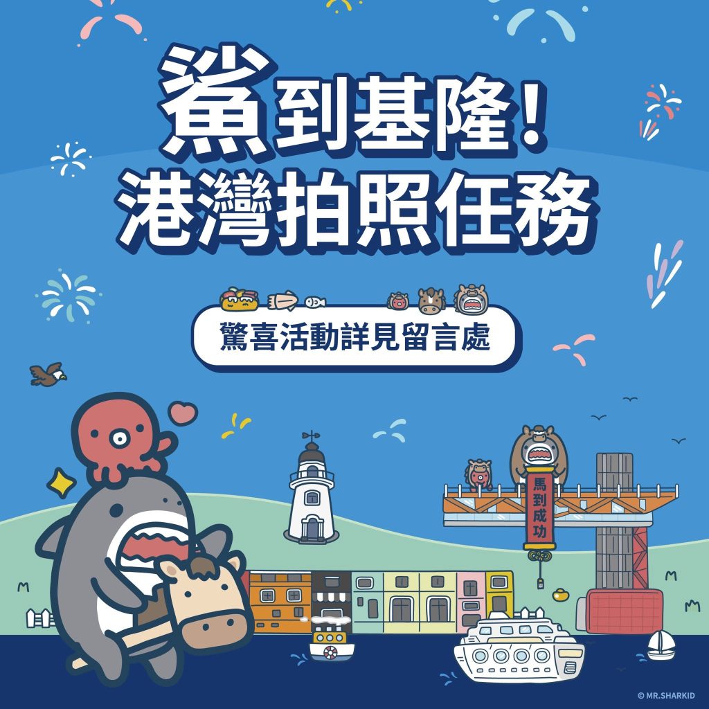 活動期間拍下任一處「鯊魚先生」身影,分享至個人社群平台並完成指定任務,即有機會獲得智慧投影機、膠囊咖啡機及禮券等好禮。(基隆市文化觀光局提供)