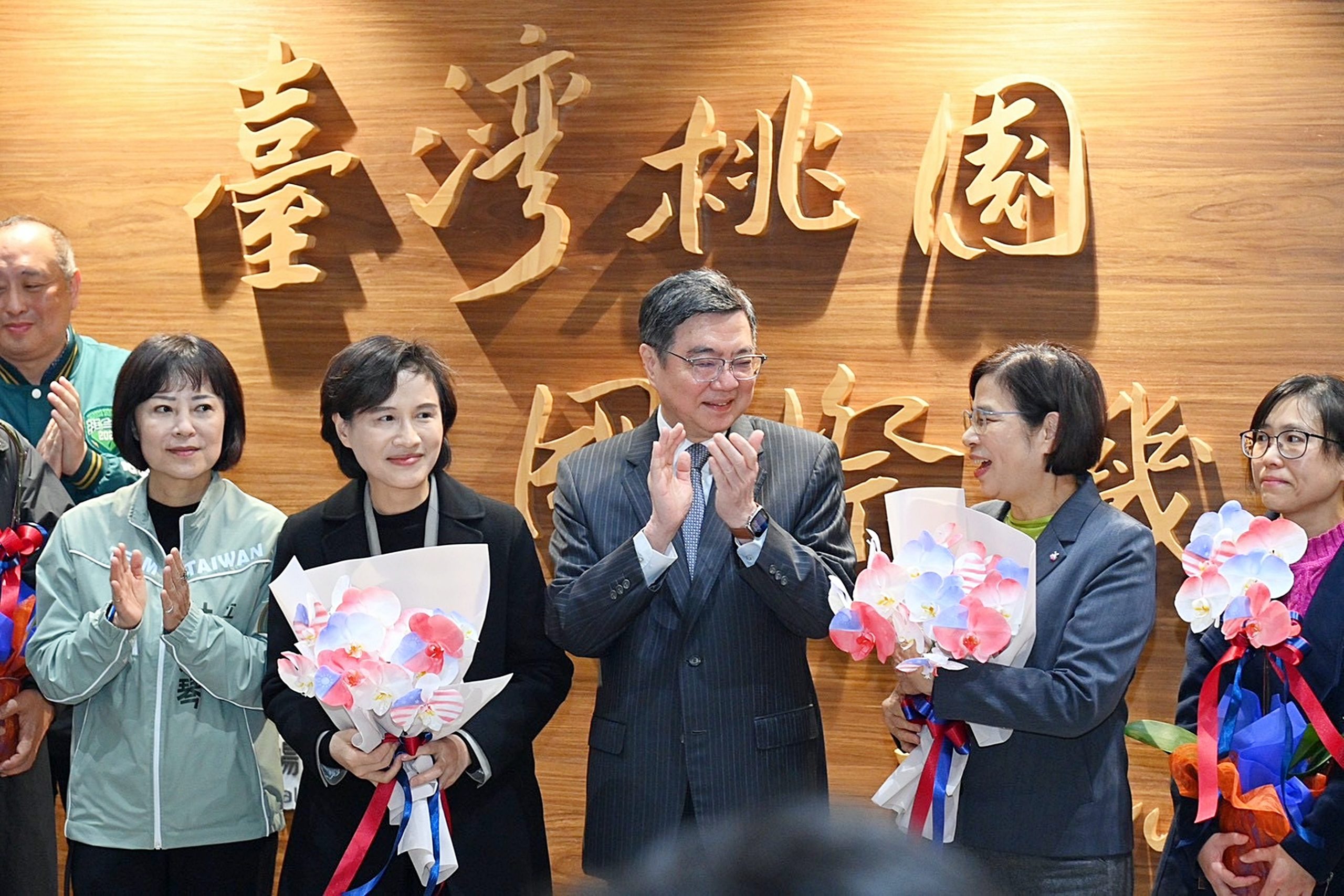 卓揆接機 鄭麗君返台 賴讚為台爭取最佳位置