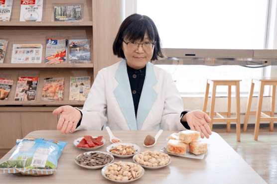 春節零食方面,糖果、餅乾、堅果與肉乾等往往是隱形熱量來源。陳美芳指出,堅果屬油脂類,每日建議攝取量約一湯匙即可,建議選擇需要剝殼、去籽的「麻煩零食」,透過增加食用步驟來放慢進食速度,降低攝取量,避免在無意識狀態下吃進過多油脂與熱量。她以蜜汁肉乾為例,一小條的熱量比同份量里肌肉高出近5成,脂肪與糖分明顯增加,蛋白質卻不如同份量里肌肉,這類經過調味與加工的零食,容易在不知不覺中攝取過量,就是春節期間最常被低估的熱量陷阱之一。