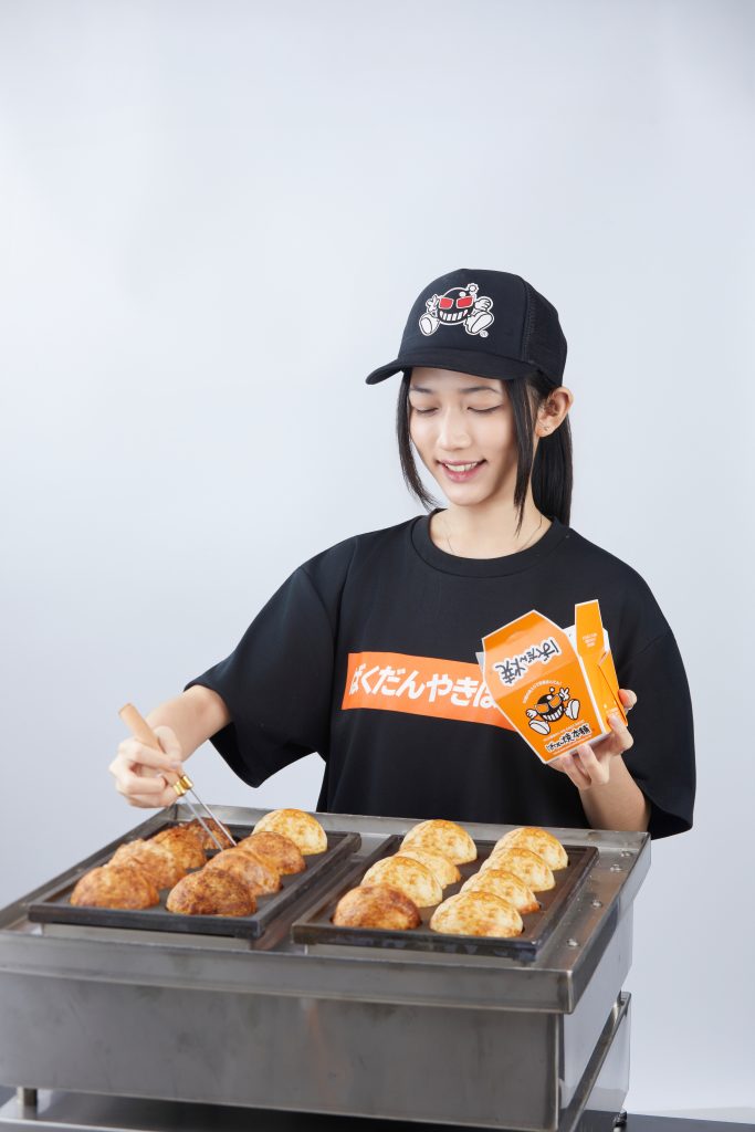 「爆彈燒本舖」(ばくだん焼本舗)起源於東京池袋,自創立以來便以「新型態街頭美食」的姿態席捲東京,是東京年輕人心中最具代表性的排隊美食之一。品牌除了特色商品「爆彈章魚燒」(ばくだん焼)外,更以頻繁與IP合作推出限定周邊聞名,曾與「鬼滅之刃」、「咒術迴戰」、「原神」等知名動漫、手遊IP合作,在日本掀起排隊旋風,近期更擴展版圖至南韓,而今登陸台灣。這枚外型如「砲彈」般的巨型球體,之所以被稱為「最有料章魚燒」並非空穴來風,由營養師監督過的配方,從麵糊開始每一毫米都是對滿足與健康的追求。除了麵糊外,以「章魚、蛤蜊、天婦羅碎、玉米、高麗菜、鴻喜菇、德式香腸、紅薑碎、小湯圓甚至鵪鶉蛋」,組成的內餡,不僅是視覺上的豐富,更是每樣食材各司其職的營養分工。不同於傳統章魚燒追求的輕巧,「爆彈章魚燒」(ばくだん焼)的核心靈魂在於其「厚實又豐盛」,每一顆都必須經過職人長時間的精準翻轉,才能維持外皮金黃酥脆、內餡炙熱又柔滑的日式口感。