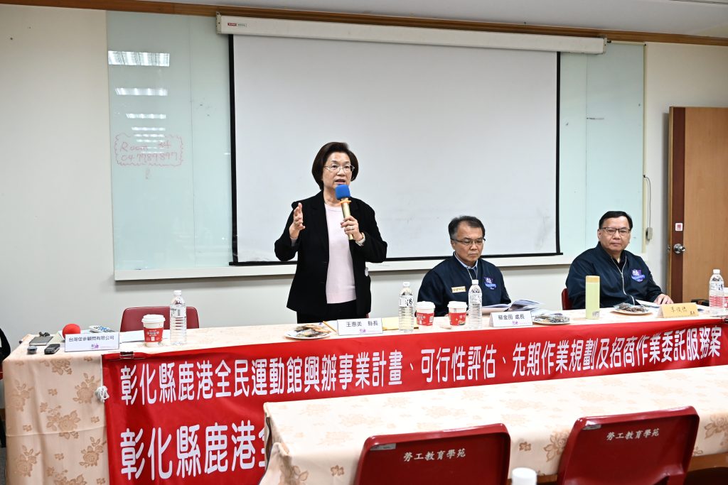 王惠美表示,說明會為鹿港全民運動館招商計畫。縣府目標於縣內八大生活圈各設立一座國民運動中心,和美館預計於今年三月啟用,鹿港館工程進度已超前,可望提前完工服務鄉親。鹿港館具備極佳市場潛力,鹿港鎮內約八萬人口,相鄰的福興鄉有約四萬人口,且緊鄰台六十一線西濱快速道路,交通路網涵蓋呈輻射往外,且擁有彰濱工業區龐大的勞工與就業市場。