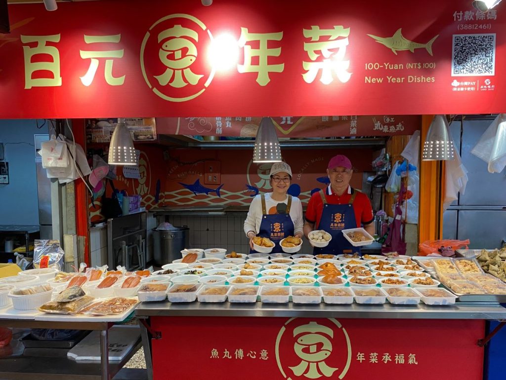 第五市場丸東商號的「百元年菜」每年均供不應求,為了讓民眾一次購足,年菜備有蹄膀、砂鍋魚頭及人蔘雞湯、米糕、海鮮羹、鯧魚米粉等,品項多元,讓所有鄉親朋友用最少花費就能吃到懷念古早味的年菜。