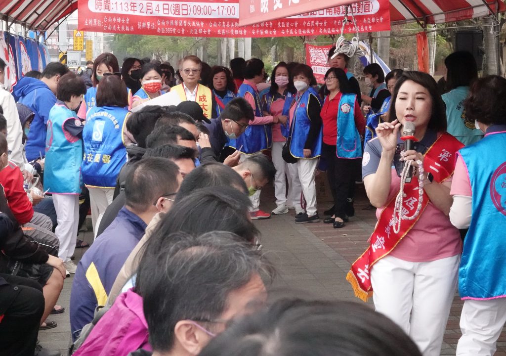 台南市婦女會今年全體總動員捐血,歡迎十七至六十五歲的民眾加入捐血行列,捐血一袋(二百五十西西),可獲全聯禮券二百元禮券,再加乾拌麵一袋,依此類推。