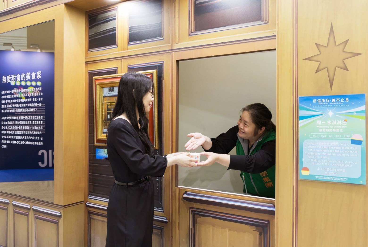 紀念展期間,張榮發基金會在每周三特別推出「冰淇淋日」,參觀民眾只要秀出在臉書打卡長榮海事博物館,即可於特展區兌換限量冰淇淋!此外,位於張榮發基金會大樓的海事博物館也於展覽期間同步免費開放。