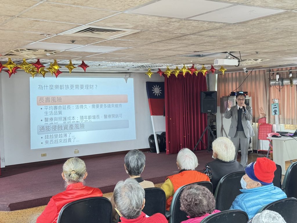 為提升住民對退休後財務規劃及風險防範的認識,八德榮家日前邀請仲英財富管理顧問有限公司陳唯泰投資長蒞臨本家,辦理「樂齡財務規劃及風險評估(含信託)」專題講座,協助住民建立正確的財務觀念,安心規劃晚年生活。