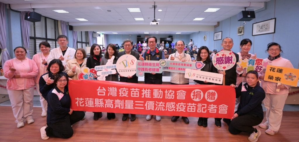 台灣疫苗推動協會捐贈三百劑賽諾菲高劑量流感疫苗給花蓮縣政府,提供六十五歲以上長者免費接種,二十一日於榮譽國民之家舉辦捐贈疫苗記者會。