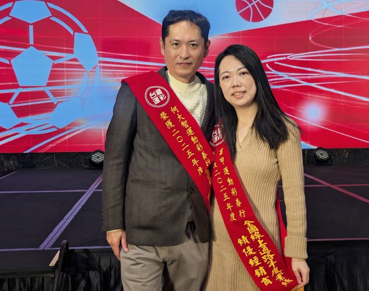 台灣運動彩券在2025年繳出傲人成績單,年銷售總額首度衝破700億大關,以710億元的歷史新高紀錄,運彩公會理事長何昱奇所經營的運動彩券行獲得網路「全國績優經銷商第二名」,其夫人石幸真擔任店長的運動彩券行也入選績優經銷商,夫婦共同上台接受表揚,傳為佳話。