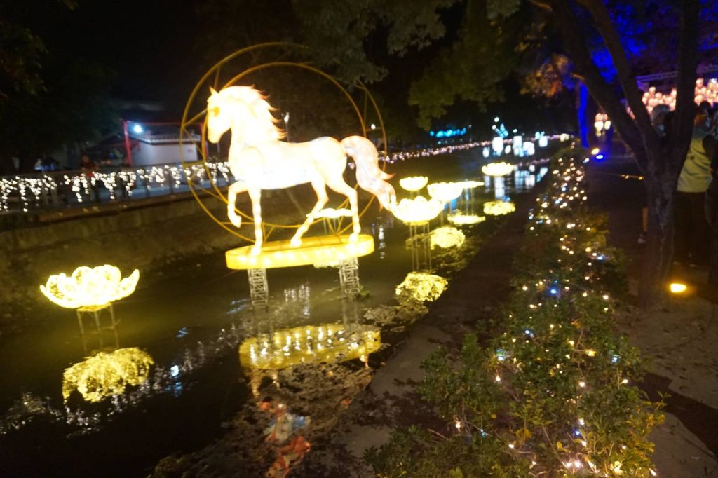 屏東燈節客家燈區提前點燈,現場燈光燦爛,美景如畫。(記者鄭伯勝攝)