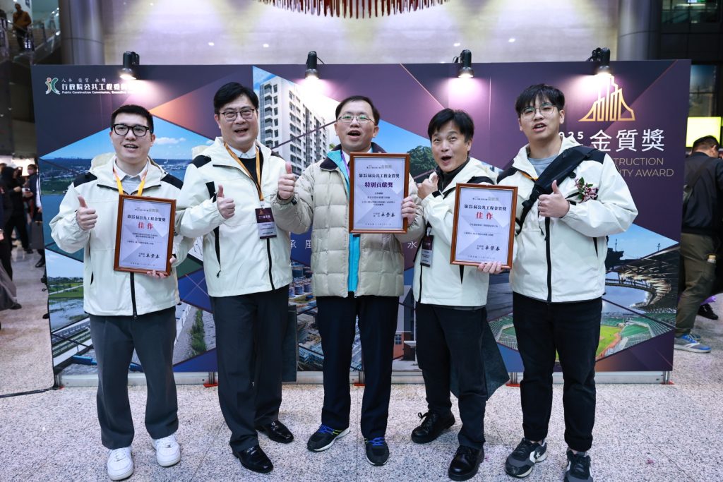 行政院工程會第二十五屆公共工程金質獎二十一日頒獎,新北市獲得六座「公共工程品質優良獎」、一座「公共設施維護管理獎」、兩座主辦機關「特別貢獻獎」及三座個人貢獻獎共十二座獎項、六都第一,由工務局長馮兆麟率團隊前往領獎。
