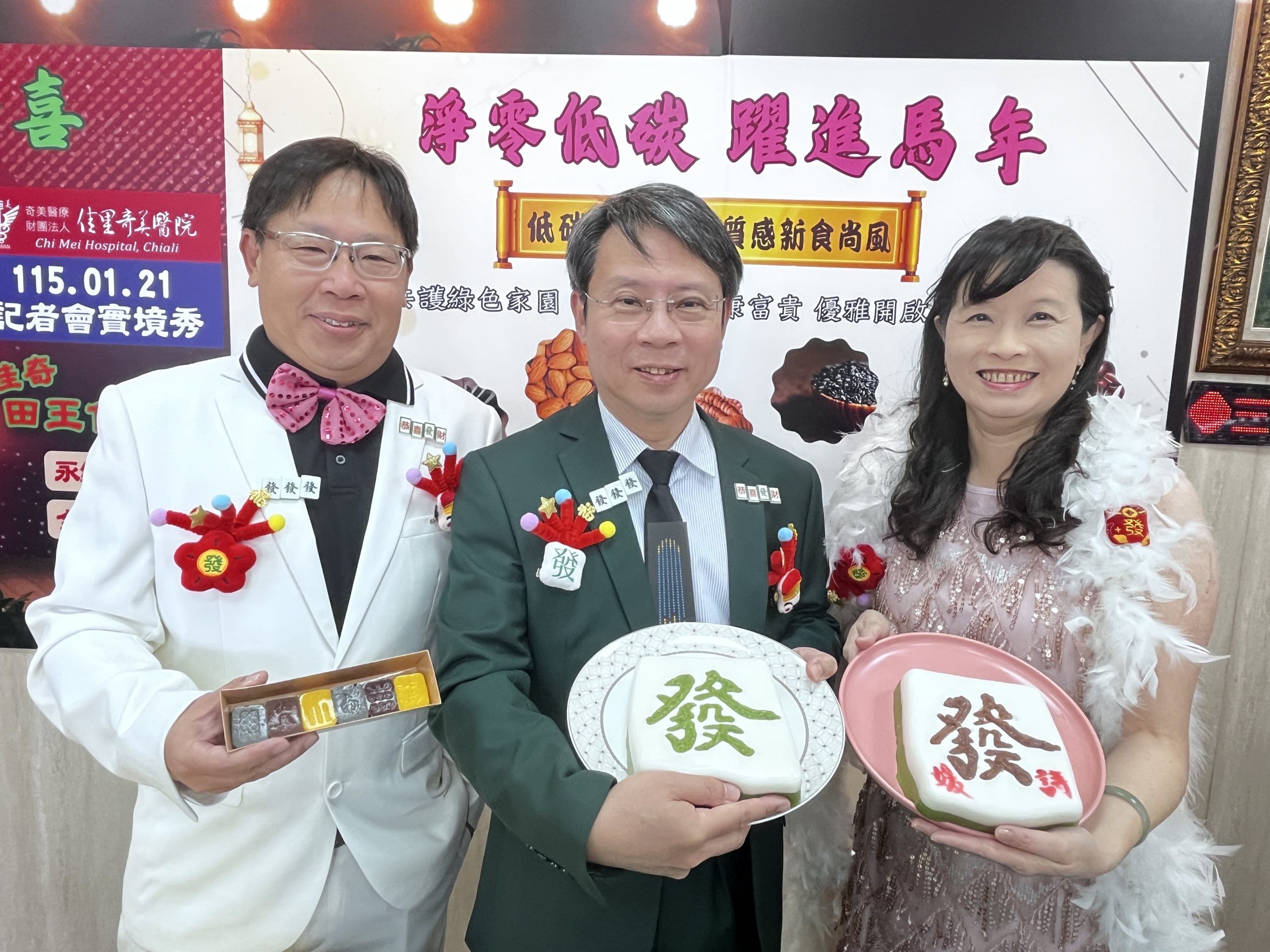 田宇峯等人打扮成佳奇「食神」,舉辦「麻將年糕實境秀」發表3款年糕、發糕和湯圓,現場以南瓜泥、波菜毛豆泥、紅豆泥為「發」糕上色,也讓民眾分享品嘗,口感柔順好吞嚥、營養加分。