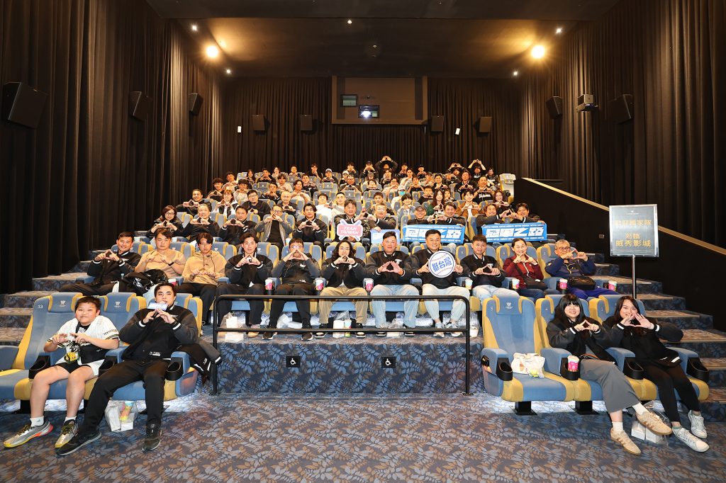 中職聯盟20日高雄包場,邀請備戰2026年經典賽的中華隊成員,以及多名國家級運動好手觀看《冠軍之路》。(中職聯盟提供,中央社)