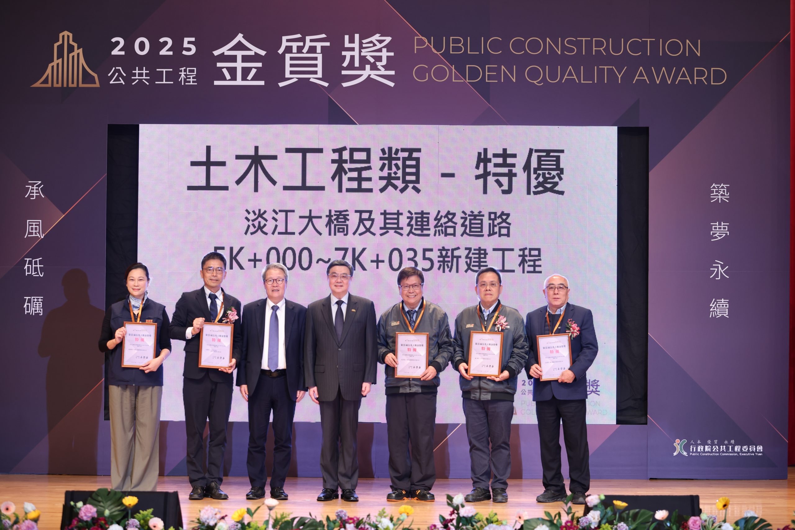 行政院公共工程委員會於21日舉行「第25屆公共工程金質獎」頒獎典禮,行政院院長卓榮泰親臨典禮,並頒發「公共工程品質優良獎」、「公共設施維護管理獎」及「個人貢獻獎」特優獎,向得獎團隊與觀禮人員表達誠摯感謝。