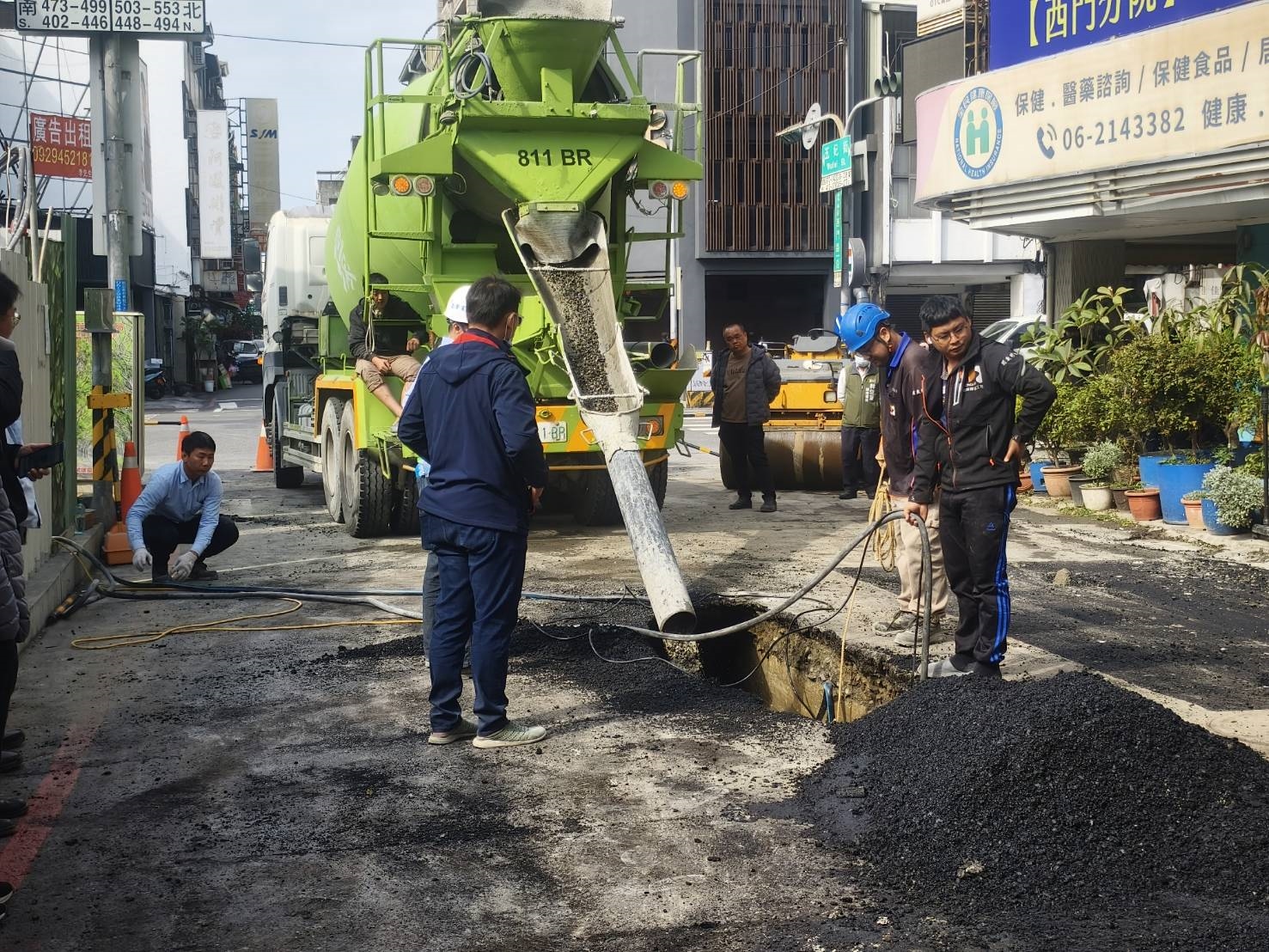 二十日發生狀況時,兩位副市長葉澤山、姜淋煌先後到場關心處置進度,工務局副局長王建雄也全程在現場掌握狀況,二十一日再度出現天坑,由副秘書長林榮川率工務、水利局等相關單位會勘,組成跨局處專案小組,全力確保公共安全與周邊住戶權益。