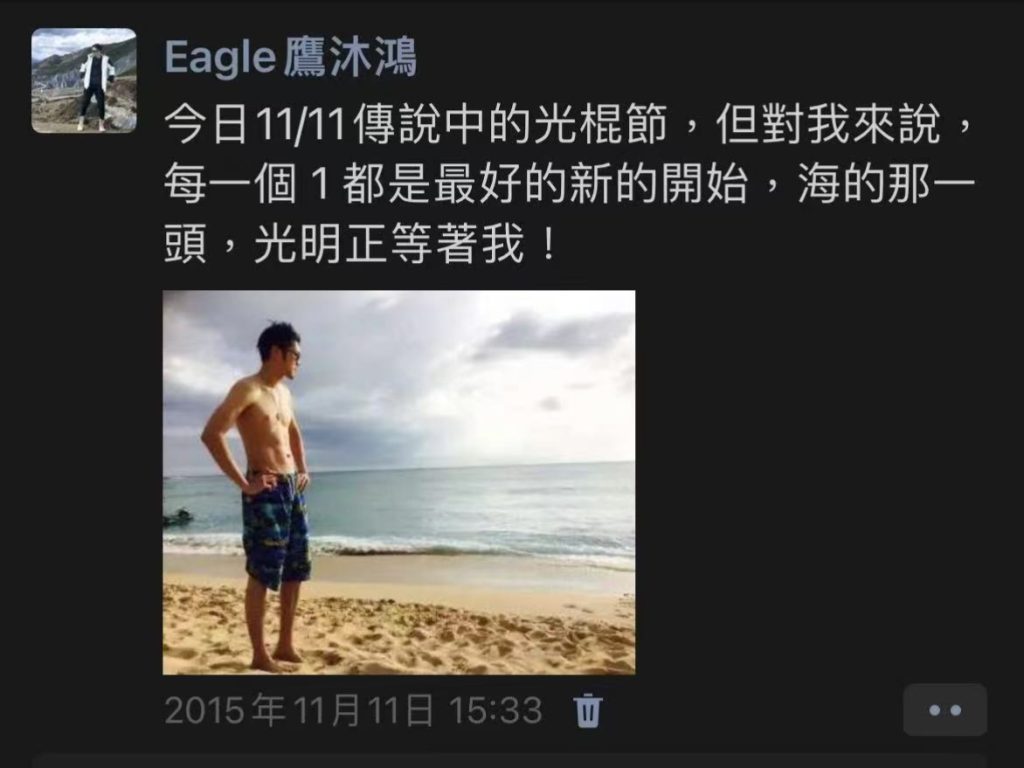徐銘鴻在赴大陸創業前於朋友圈發文,記錄人生轉折前的心境。(圖/徐銘鴻提供)