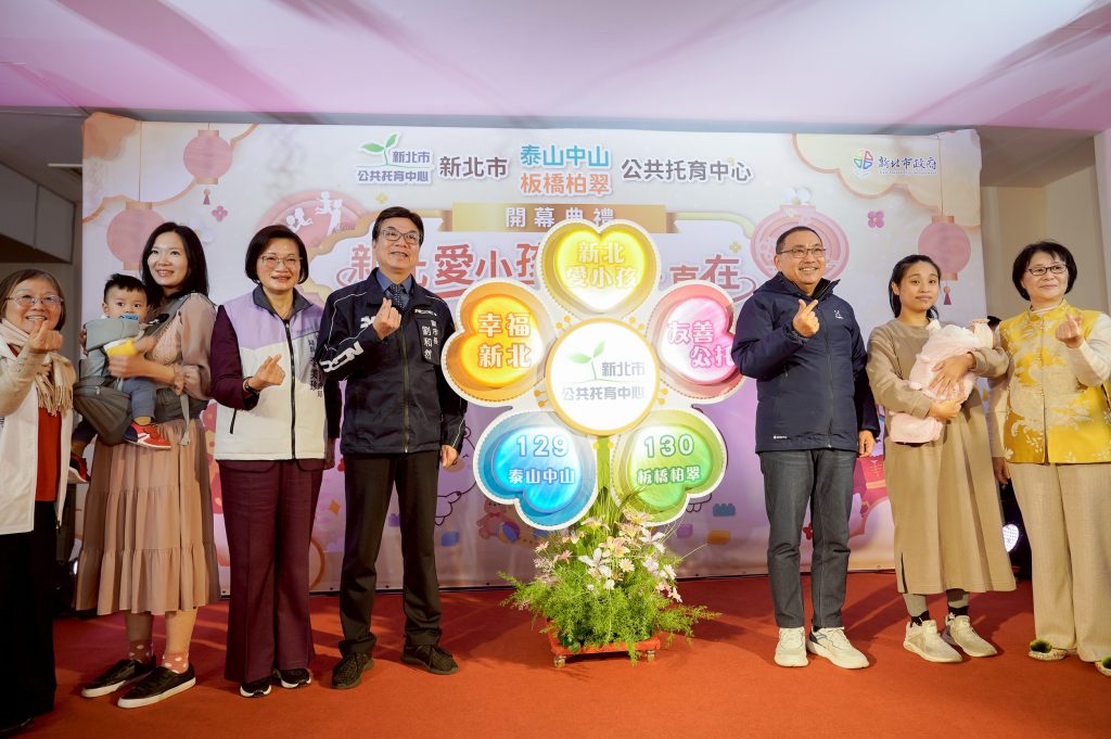 新北市公共托育中心正式邁向130家新里程碑!新北第129家「泰山中山公托中心」及第130家「板橋柏翠公托中心」於今(22)日舉行聯合開幕儀式。兩處新啟用的公托中心,分別為新北市第8處社會住宅附屬公益空間及第10處公益回饋空間,共可收托100名0至2歲嬰幼兒,持續擴充新北市托育服務量能。