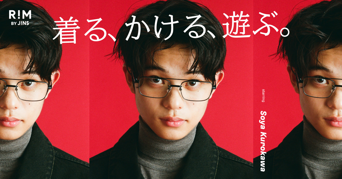 JINS旗下主打時尚眼鏡的姊妹品牌「RIM」特別邀請在電影《國寶》中表現亮眼、引發熱議的演員—黑川想矢擔任視覺形象大使,公開以「穿搭、配戴、玩轉。」為主題的全新視覺。