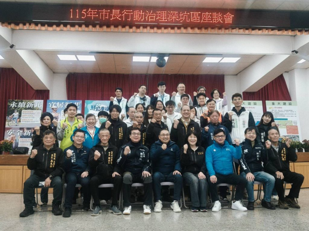 新北市長侯友宜於今(22)日率領市府團隊來到深坑區召開行動治理座談會。侯友宜表示,市府正全力推動深坑輕軌與基礎建設,並結合已動工的社會住宅積極爭取公益回饋設施,市府將與里長並肩作戰。