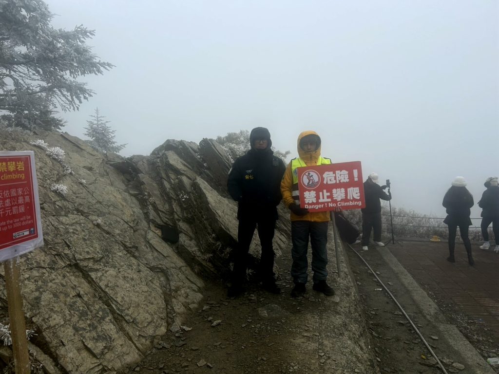太魯閣國家公園管理處二十二日表示,武嶺屬太魯閣國家公園遊憩區範圍內,是合歡山區的重要旅遊據點,有民眾為拍美照,攀爬至武嶺岩壁上與森林積雪合照屬違法行為,將加強取締。