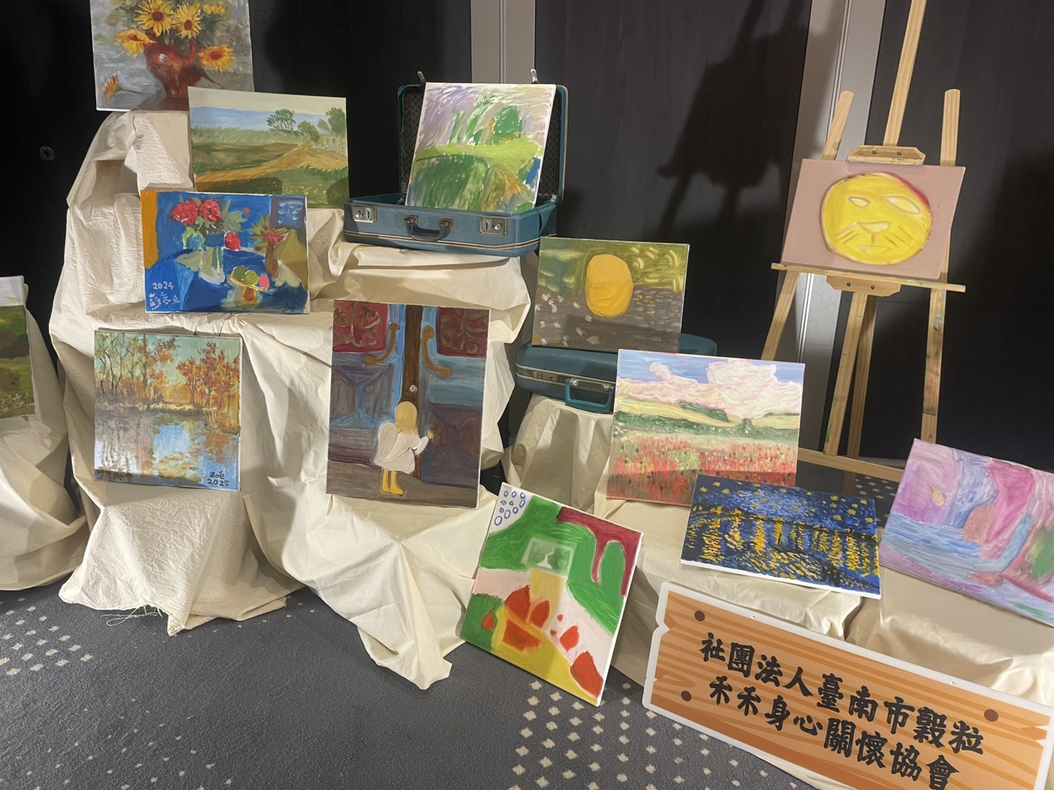 穀粒禾禾學員透過繪畫呈現情感與生命故事,讓社會看見精神康復者的多元表達與內在力量。(記者林怡孜攝)