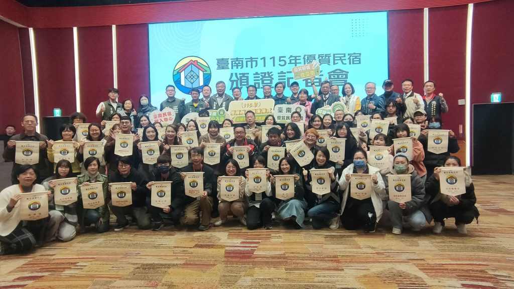 觀旅局二十二日舉辦民宿優質認證,共有八十家獲得,由市長黃偉哲親頒可獲得「台南市優質民宿錦旗」一面。獲證民宿,包括風格、毛小孩、生態景觀、背包客、親子、老屋再生、文化主題、特色設計等,另有車宿、自行車和高齡友善等。觀旅局表示,台南合格登記的民宿約七二八家、二七九四房,農曆春節將屆,許多遊客會前來探親、旅遊,加上還有寶可夢等活動,目前訂房率已有五、六成。