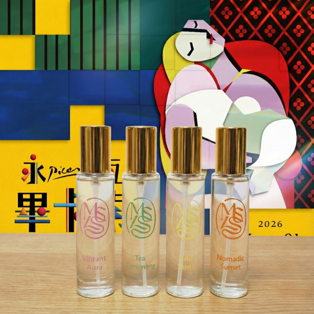 不僅在年貨大街增添年味,明星花露水更走進藝術場域,《「永恆畢卡索」光影藝術展:藝術、繆思與知己》中正紀念堂盛大開展,這場機會難得的沉浸式展覽,明星花露水以精湛的香氛工藝跨界結合光影科技,透過「眼睛所見」與「氣味所感」的雙重感官設計,依據畢卡索名作推出四款限量聯名香氛,為觀眾打造更完整、立體的藝術體驗,開啟一場全感官的沉浸式旅程。