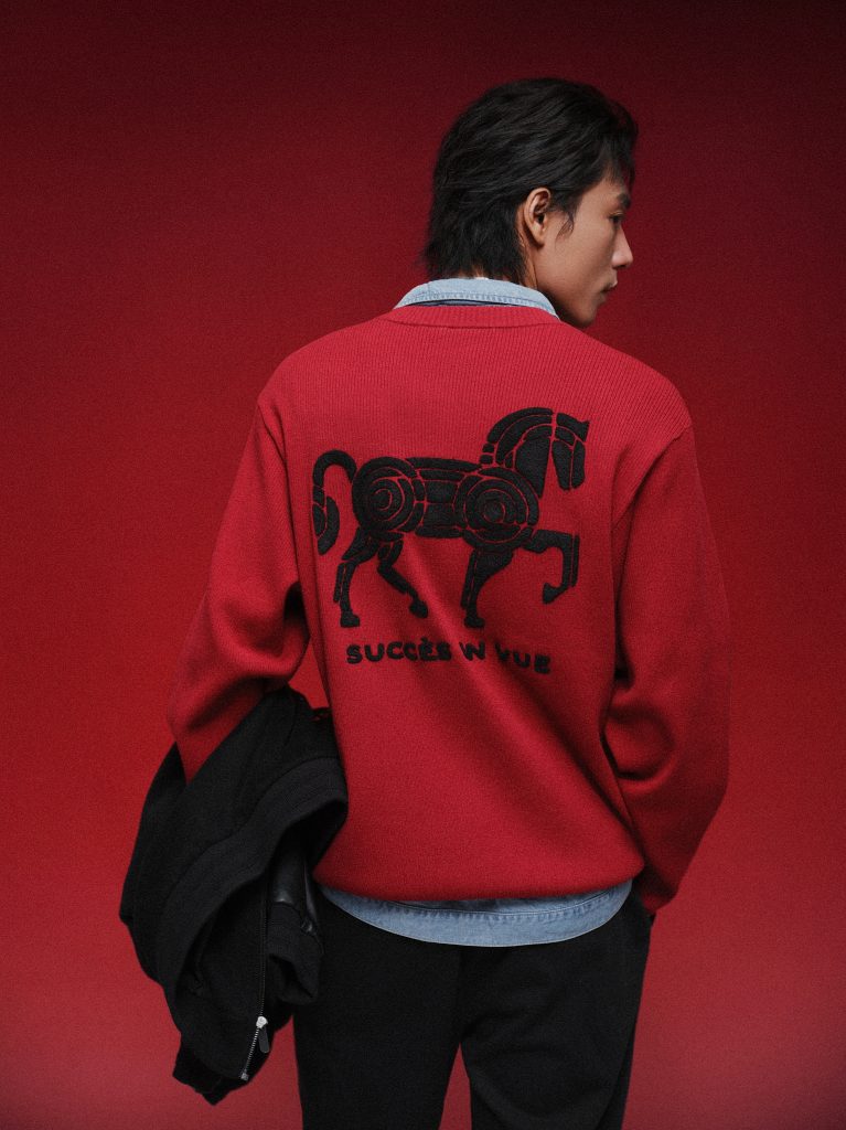 在日常內搭的選擇上,長短袖系列則將馬年限定標語化最吸睛的時尚語彙,無論是摸起來超療癒的植絨毛衣,還是輕盈好搭的圖騰長、短袖T恤皆透過獨特的印繡工藝展現強烈的風格宣言。色系上除了溫柔感爆棚的香草冰淺色調,還有經典百搭的鉛黑色,以及補滿能量的底氣紅。