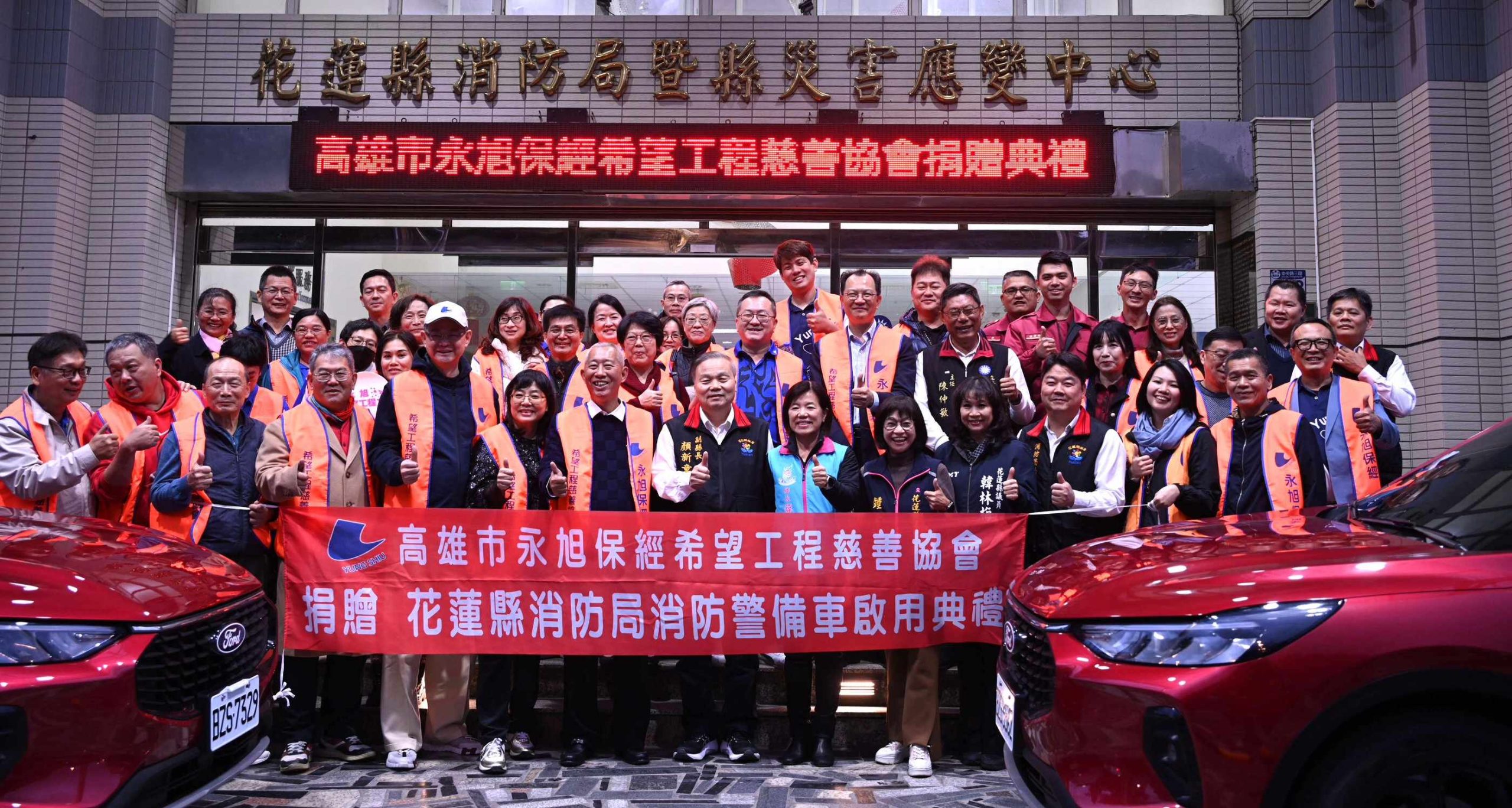 為提升花蓮縣整體防救災應變能量,強化第一線災害勘查與搶救效能,高雄市永旭希望工程慈善協會在花蓮縣消防局應變中心舉辦「災情勘查車及搶救裝備器材捐贈典禮」。