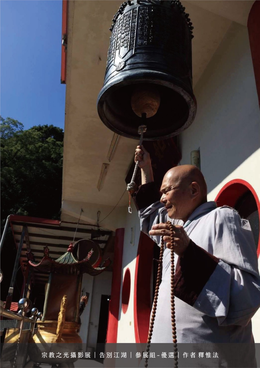 其中,參展組優選作品釋惟法的攝影作品最令人動容,主題名稱為「告別江湖」,觀者會發現釋惟法師父斷了二指,他說,自己以前曾是江湖中人,為了離開江湖,斷一指敬父、再斷一指敬母,從此出家宣揚佛法。所斷二指,也時時警惕自己,要行善報父母恩。