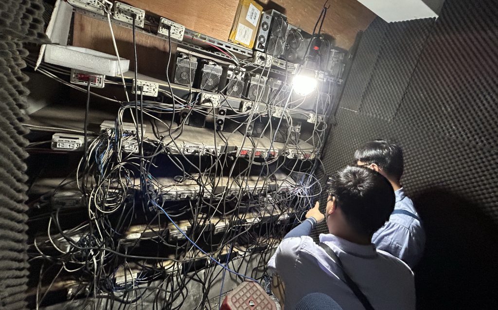 全案源於一一0年八月,鄭姓男子與蘇姓妻子在友人牽線下,接觸販售網稱「挖礦機」的黃姓設備商,夫妻倆出資擔任金主,每座礦場支付四十萬元建置費用,並透過周姓男子充當租賃場地的人頭,場地到位後,礦場竟以鑿孔方式破壞牆面,將私接電線穿入建物內,再以未經絕緣的裸線直接接上礦機礦架,二十四小時不間斷運轉。