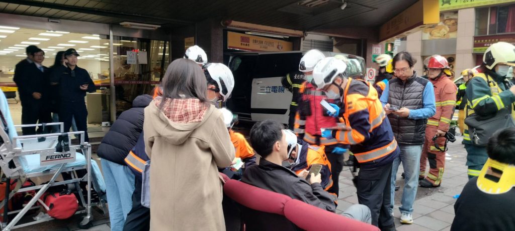 警消下午三時十分獲報,指中山區南京東路二段的彰銀吉林分行突遭一輛汽車衝撞,造成多人受傷。立即出動指揮車三輛、消防車五輛、救護車五輛和三十六人到場救援。