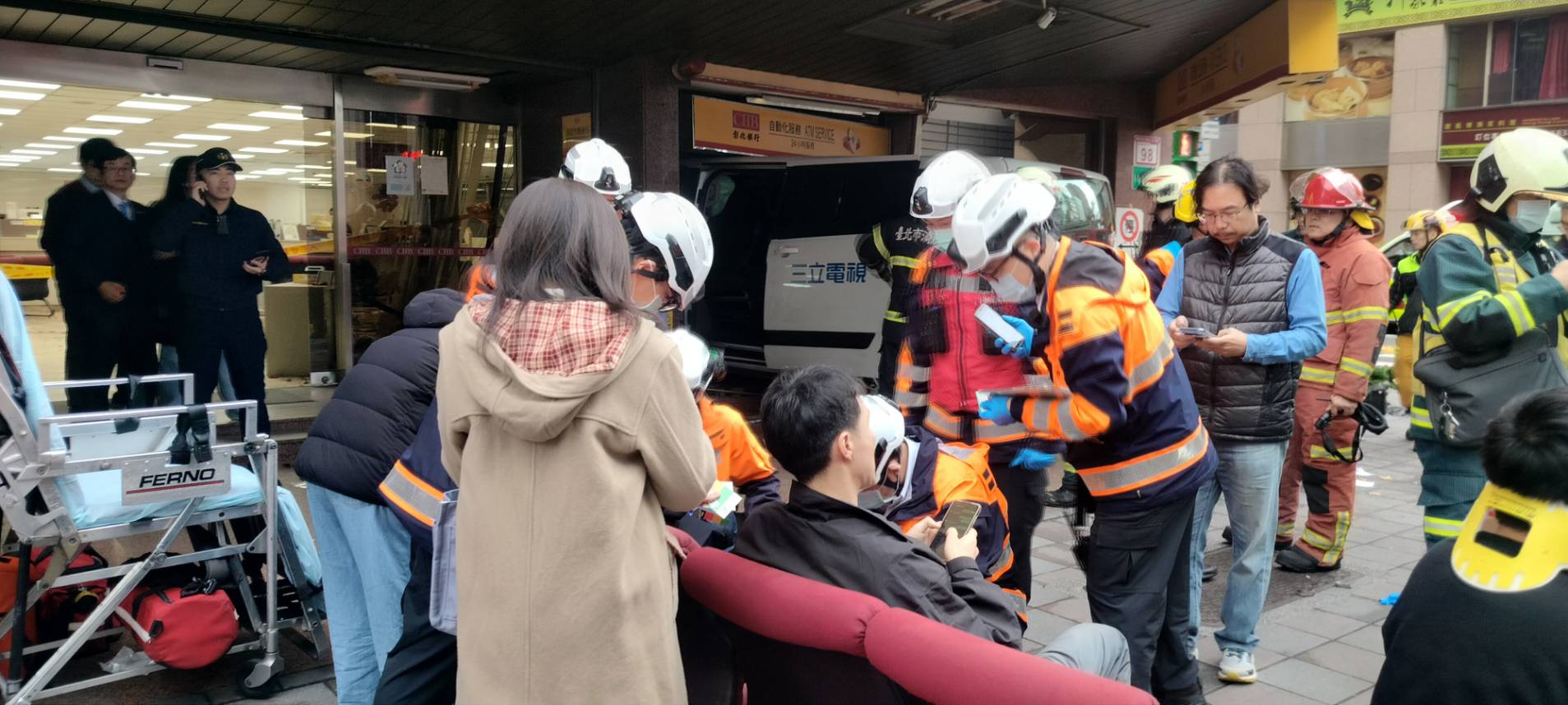由四十八歲林姓駕駛的三立電視台採訪車二十三日突然衝撞進台北市彰銀吉林分行,造成十人輕重傷,建物多處受損。警消獲報到場救援,林男供稱是因恍神釀禍,初步已排除酒駕。三立發布聲明,除表達歉意,也強調將負起應盡責任。