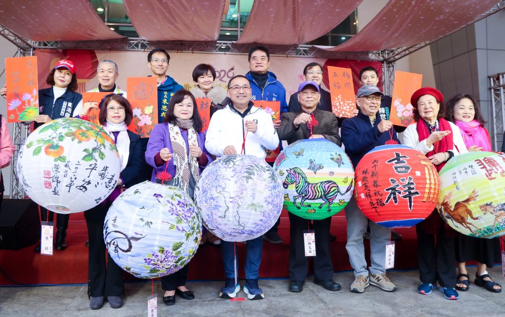 迎接即將到來的農曆新年及元宵節,新北市新莊區公所「迎新年慶元宵彩繪燈籠」活動二十四日上午於新莊文化藝術中心前廣場登場,市長侯友宜與大小朋友們一起彩繪燈籠,祝福市民新的一年馬到成功、幸福加「馬」。