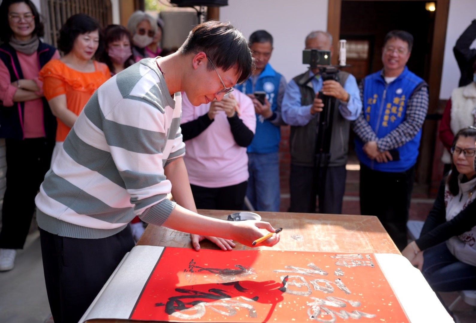 農曆春節將至,大內區公所二十四日舉辦「二0二六『馬』躍大內–新春揮毫暨政令宣導活動」,以「寫平安、過好年」為主軸,現場邀請書法家揮毫寫春聯,限量二百幅被索取一空。