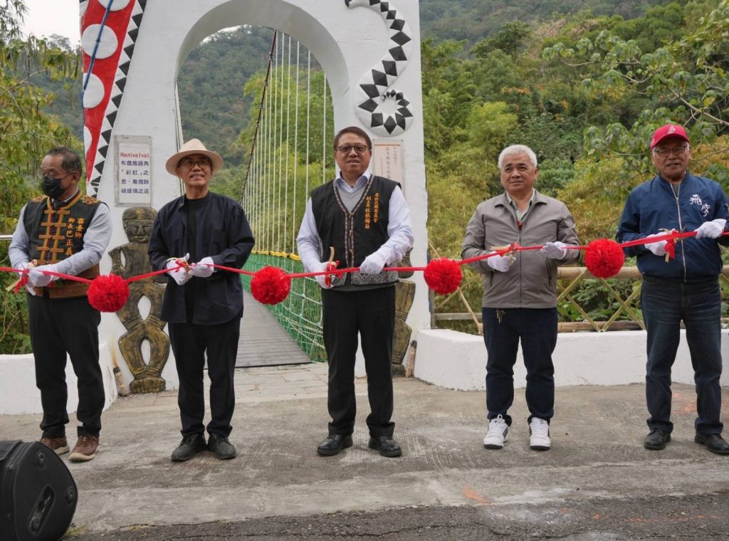 原民會原住民族文化發展中心所屬臺灣原住民族文化園區「彩虹及觀流吊橋」設施老化,經原發中心的全面修繕工作,於二十五日下午舉辦「通橋啟用典禮」,由原民會副主委杜張梅莊、原發中心主任邱黃肇崇等人剪綵後,正式宣布封閉修繕近兩年的一號吊橋「彩虹橋」及二號吊橋「觀流橋」全面恢復通行,趕在農曆春節前為遊客提供更安全、優質的文化體驗場域。
