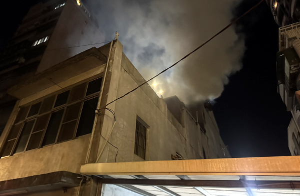 中壢區延平路發生火警,火光和濃煙四竄,很是嚇人。(照片桃園消防局提供)