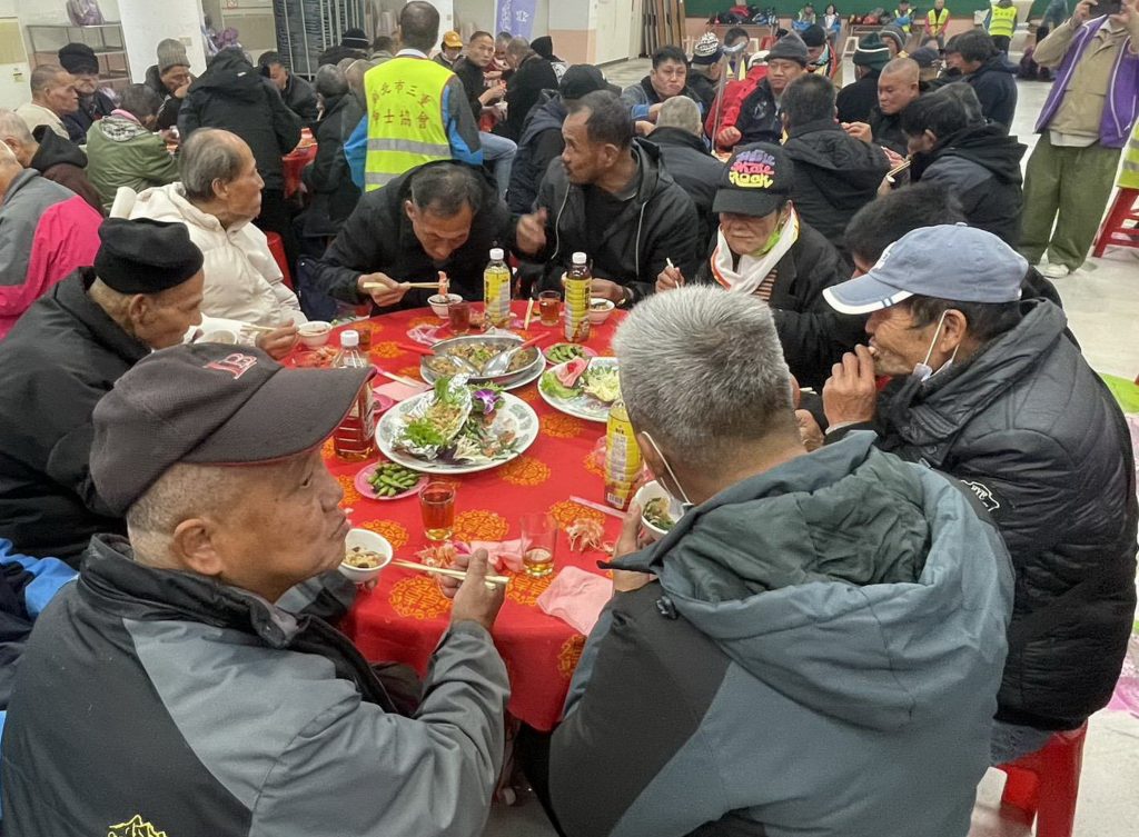 新北市三重紳士協會廿四日晚間在舉辦「一一四年關懷街友、歲末惜福餐會」為在地街友準備豐盛佳餚迎新年。 (記者吳瀛洲攝)