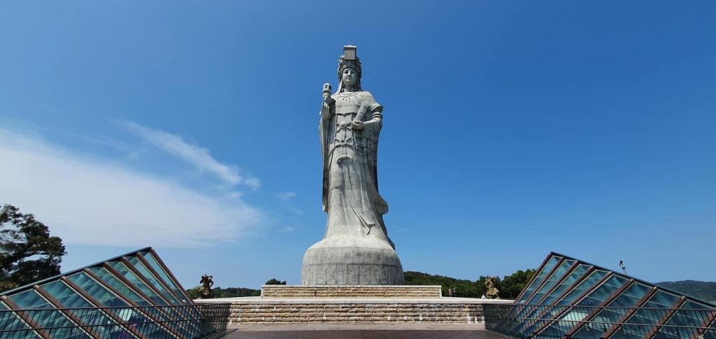 行程首日自台中搭機前往南竿,展開馬祖戰地巡禮。首先造訪福澳村制高點福山照壁,巨石上刻有「枕戈待旦」四字,象徵昔日軍民守土衛國的決心。接續參觀代表性戰地設施二四0砲陣地,巨大火砲靜靜佇立山頭,訴說冷戰年代的前線記憶。宗教文化部分則安排鐵板少女媽祖與馬港天后宮,其中清秀的少女媽祖神像被視為最接近傳說原貌的形象。傍晚前往媽祖巨神像,由三百六十五塊花崗岩堆砌而成,寓意日日平安。夜間重頭戲則是北海坑道夜搖藍眼淚,在幽深坑道中搖櫓前行,海水因夜光藻拍擊而閃耀藍光,夢幻景象令人屏息。