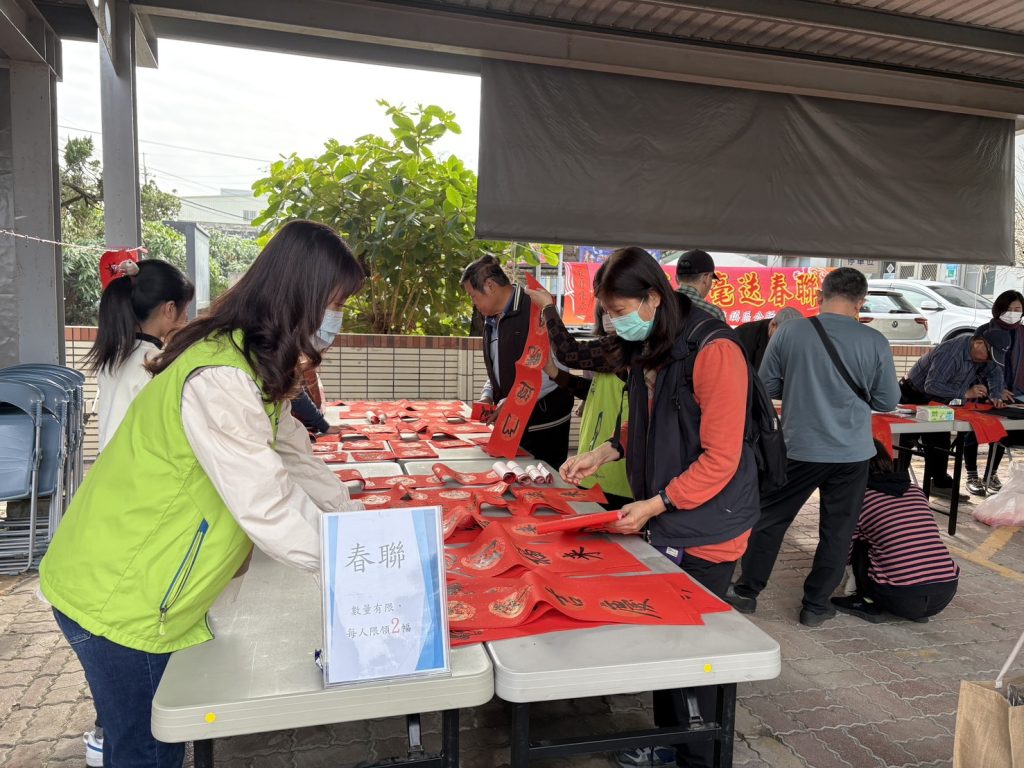 迎接農曆春節,左鎮區公所二十五日舉辦名家揮毫寫春聯,吸引民眾前來挑選。(左鎮區公所提供)