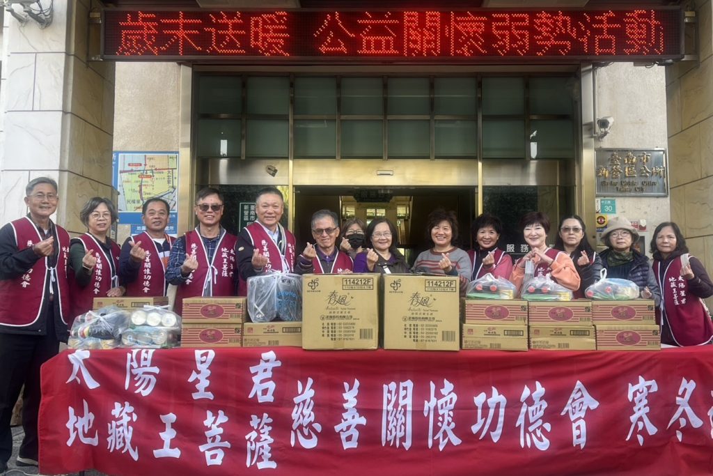 太陽星君慈善關懷功德會每年都安排寒冬送暖行動,足跡走遍海邊及山區。今年由功德會理事長龔節誠與執行長王明祥帶領會員走遍溪北十三個行政區,共同完成一百個弱勢戶送暖。