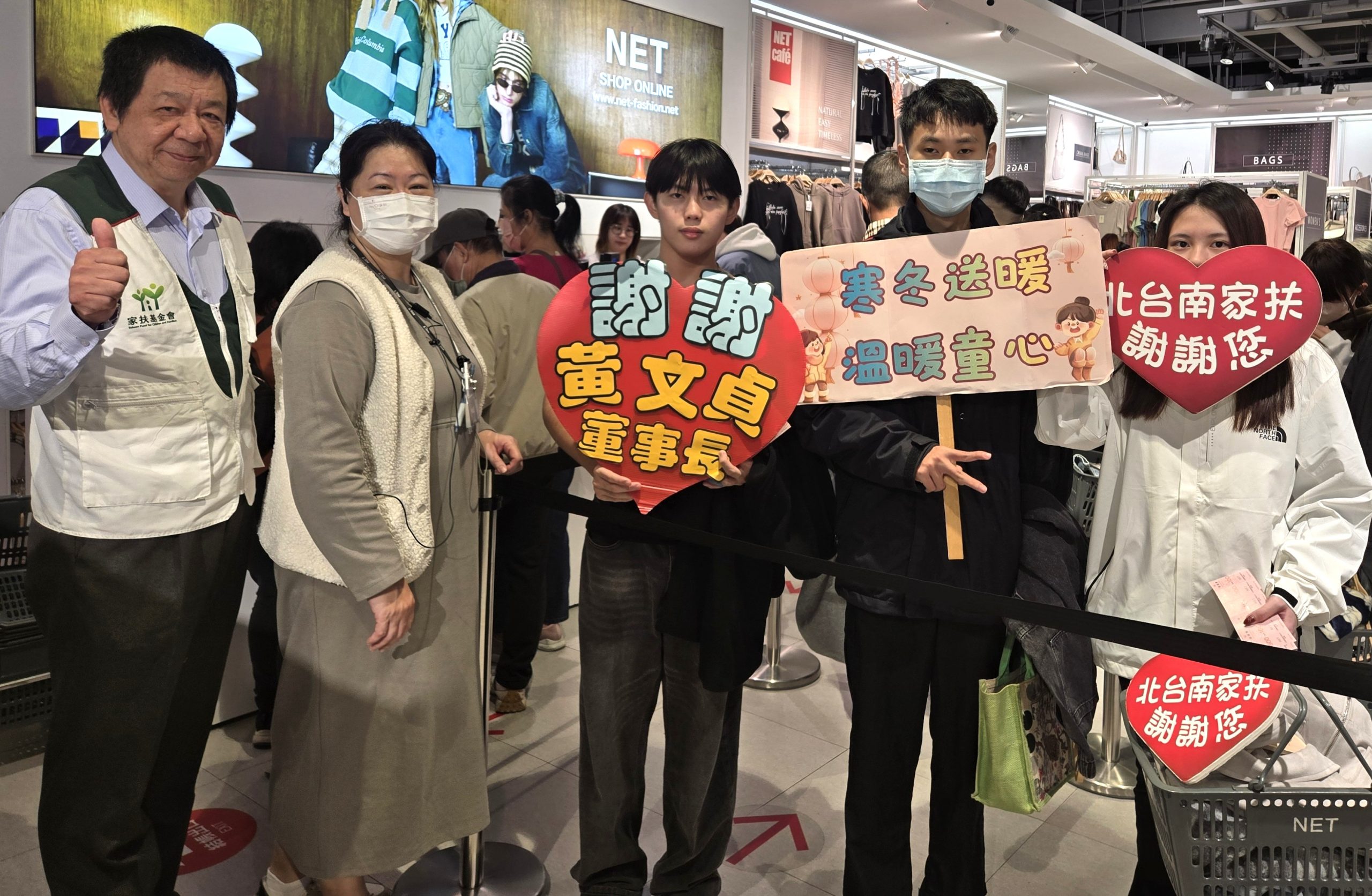 NET(主富服裝)第十六年捐贈提貨券給家扶中心兒少購買新衣,今年北台南家扶再次獲贈八十萬元,預計有四百名學童受惠。將分別於新營、佳里及永康門市挑選新衣。