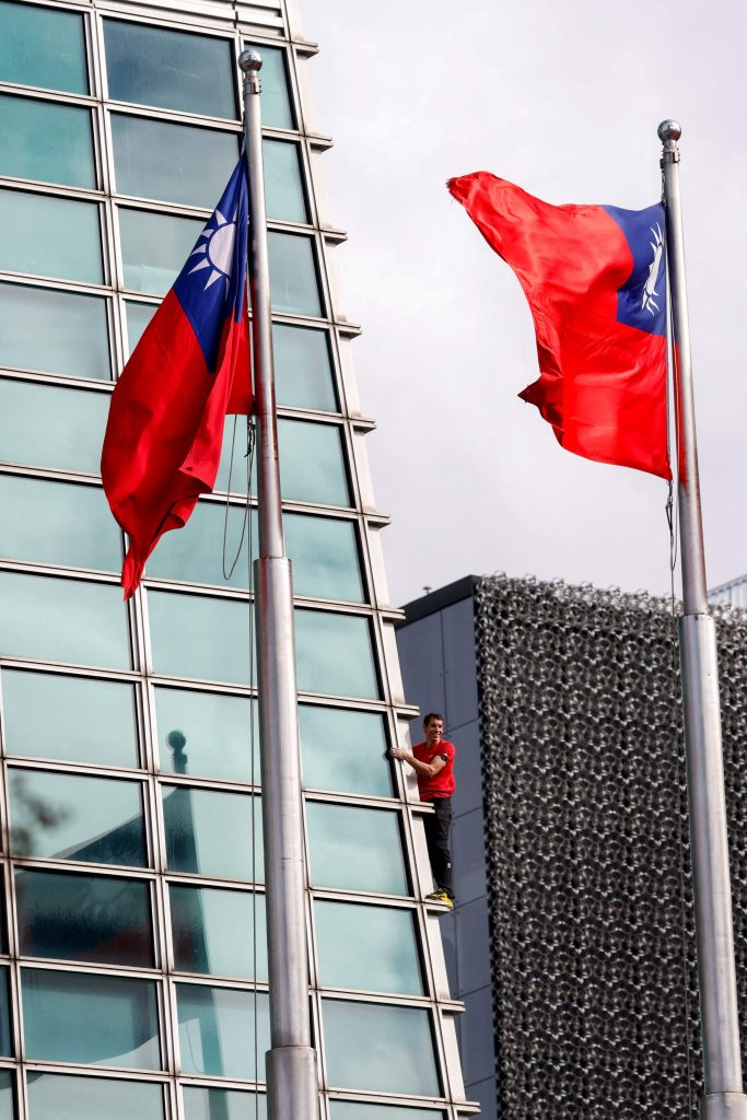霍諾德僅花了91分鐘便完成徒手攀登台北101的壯舉,成為史上第一人。Netflix全球直播此次行動,途中他與中華民國國旗同框的畫面,也登上CNN。(路透)