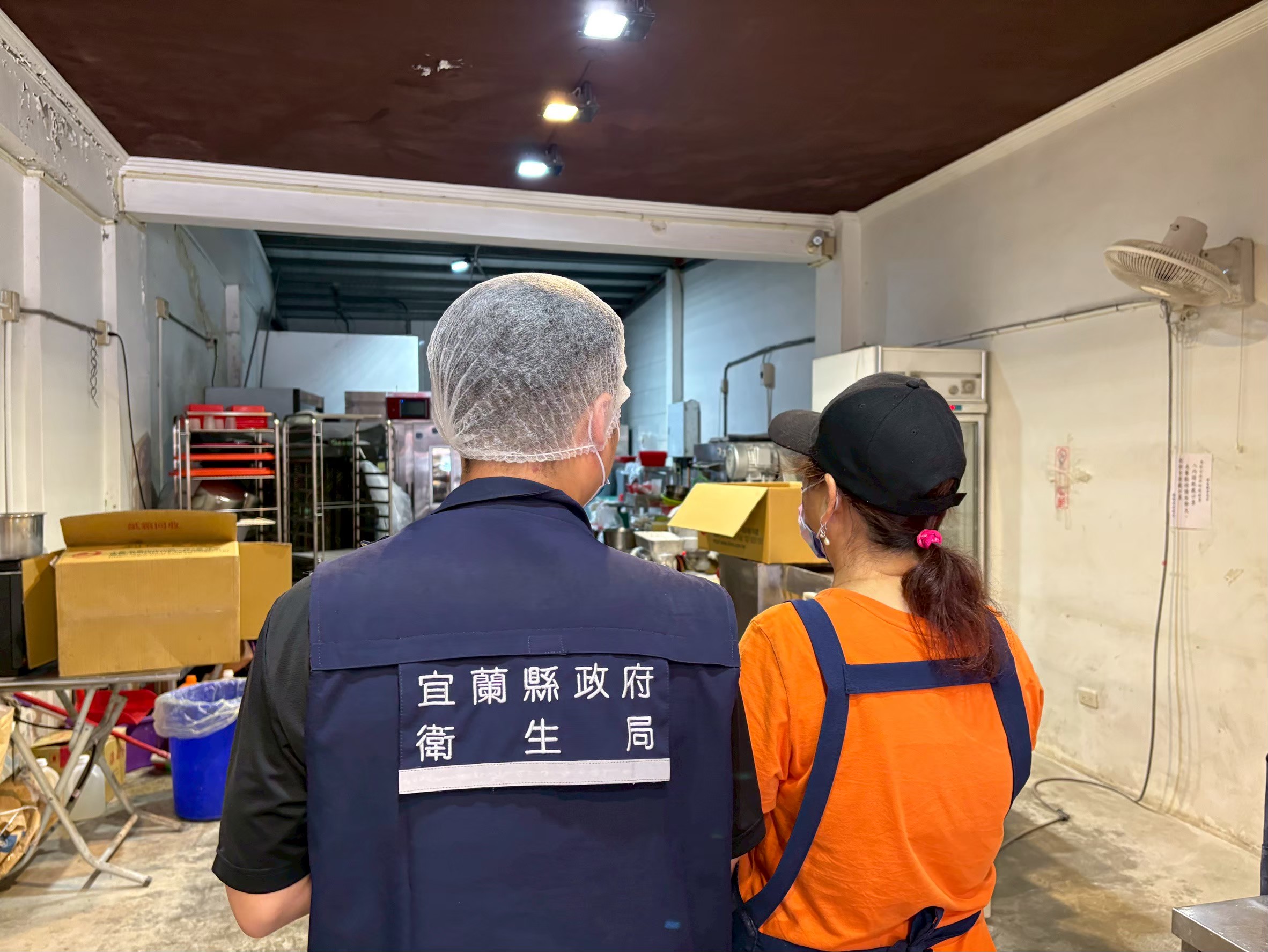 宜蘭縣衛生局於農曆春節前執行稽查,針對從業人員個人衛生、食材來源管理及製作配膳場所環境。缺失已責令業者立即改正,經複查後四十九家餐廳均已符合規定。(宜蘭縣衛生局提供)