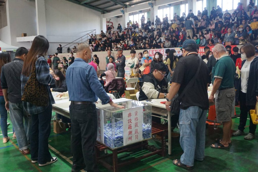屏東縣「潮州春節年街市集」四十七個特區攤位創歷史新高價標出後,鎮公所再於二十七日在潮州運動公園體育館進行一般區三六三個攤格位抽籤工作,整個體育館擠滿二一三四位攤商,現場呈現幾家歡樂幾家愁場面。