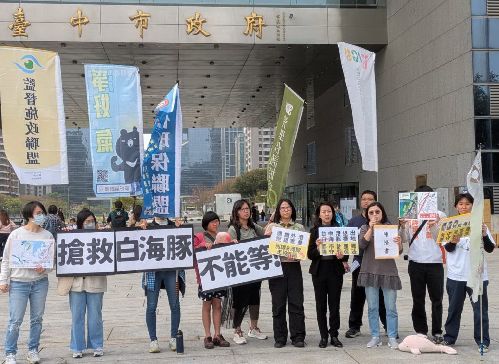 台灣媽祖魚保育聯盟等環保團體昨日上午到中市府前廣場陳情,質疑市府罔顧嚴重瀕危的白海豚族群存亡,在台中港特定區第四次通盤檢討草案中,隻字不提白海豚重要棲地環境與特定區海域高度重疊問題。